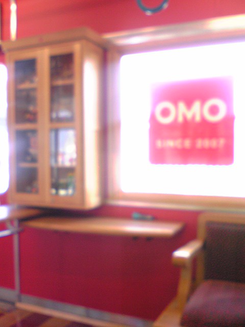 普通に電車待ってたら、真っ赤な電車が来て「OMODEN」って書いてて