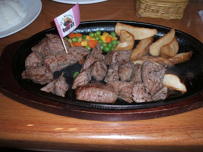 お次は-TとU@ステーキ屋さん。サイコロステーキ頼みました。